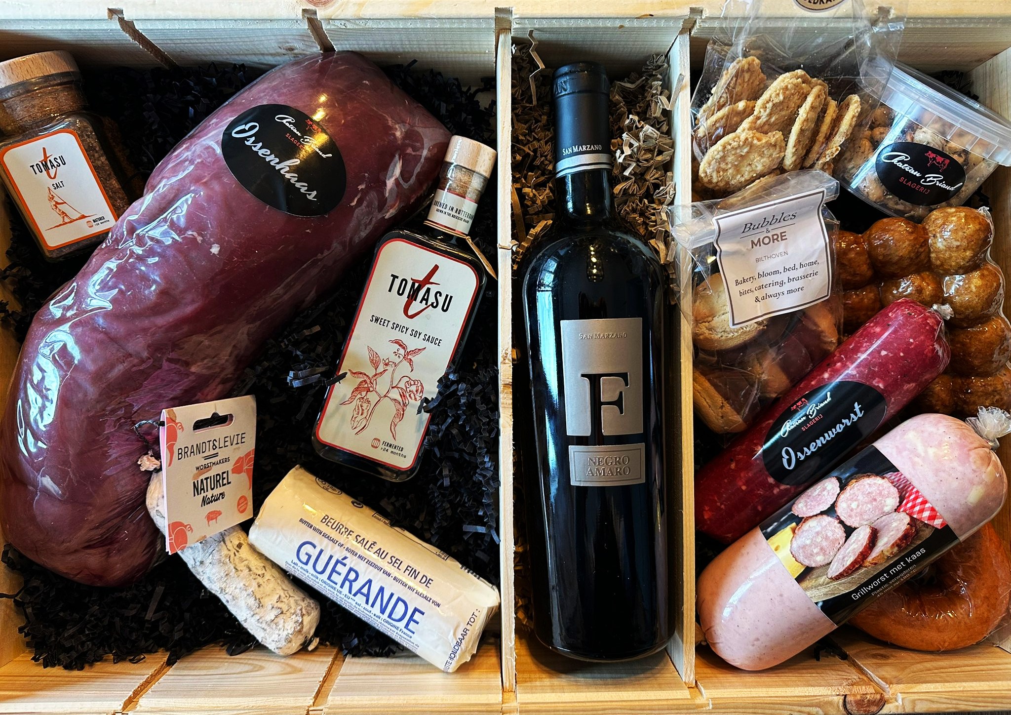 Een royaal pakket voor wie van goed eten houdt. Van een hele ossenhaas tot fijne delicatessen — dit pakket combineert ambacht, smaak en luxe.